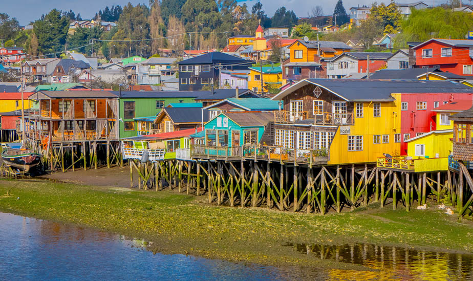 Και μετά ήρθαν οι ισπανοί κονκισταδόρες (16ος αιώνας). Ήρθε δηλαδή ο «πολιτισμός» ο οποίος γκρέμισε τις καλύβες και έχτισε σπίτια. Αυτά τα σπίτια χαρακτηρίζουν την περίεργη αρχιτεκτονική του Τσιλοέ. Ξύλινα, πλωτά, χρωματιστά, που αντέχουν και αντέχουν, σε έναν τόπο με παροιμιώδη υγρασία. Πώς δεν σαπίζουν; Διότι είναι κατασκευασμένα από το τοπικό «κόκκινο ξύλο» που αντέχει πιο πολύ κι από πέτρα. Πώς δεν βουλιάζουν; Διότι οι τεχνίτες ανέπτυξαν φόρμουλες αξεπέραστες και ανεξιχνίαστες στις μέρες μας. Όταν η παλίρροια μαζεύει το νερό φαίνονται οι πάσσαλοι που είναι μπηγμένοι γερά στον ωκεανό. Όταν το νερό ελευθερώνεται, τα σπίτια μοιάζουν σαν να επιπλέουν. Όσο για τα κεραμίδια τους; Κι αυτά από ξύλο, για χρόνια χρησιμοποιούνταν ως χρήματα για την τοπική οικονομία. Πλήρωνες με κεραμίδι και αγόραζες ψάρι…