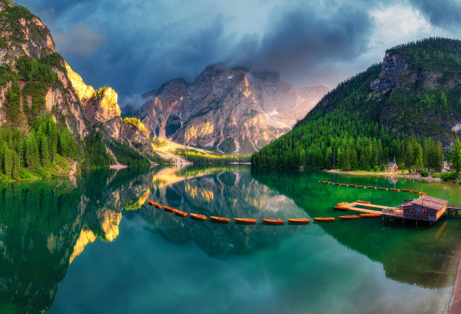 Πρώτη στάση η λίμνη Μπράιες (Lago di Braies) στο νότιο Τιρόλο. Γνωστή και ως «Μαργαριτάρι των Άλπεων» λόγω της ομορφιάς της, διαθέτει καταπράσινα νερά και όσο πράσινο μπορούν να αντέξουν τα μάτια σας.