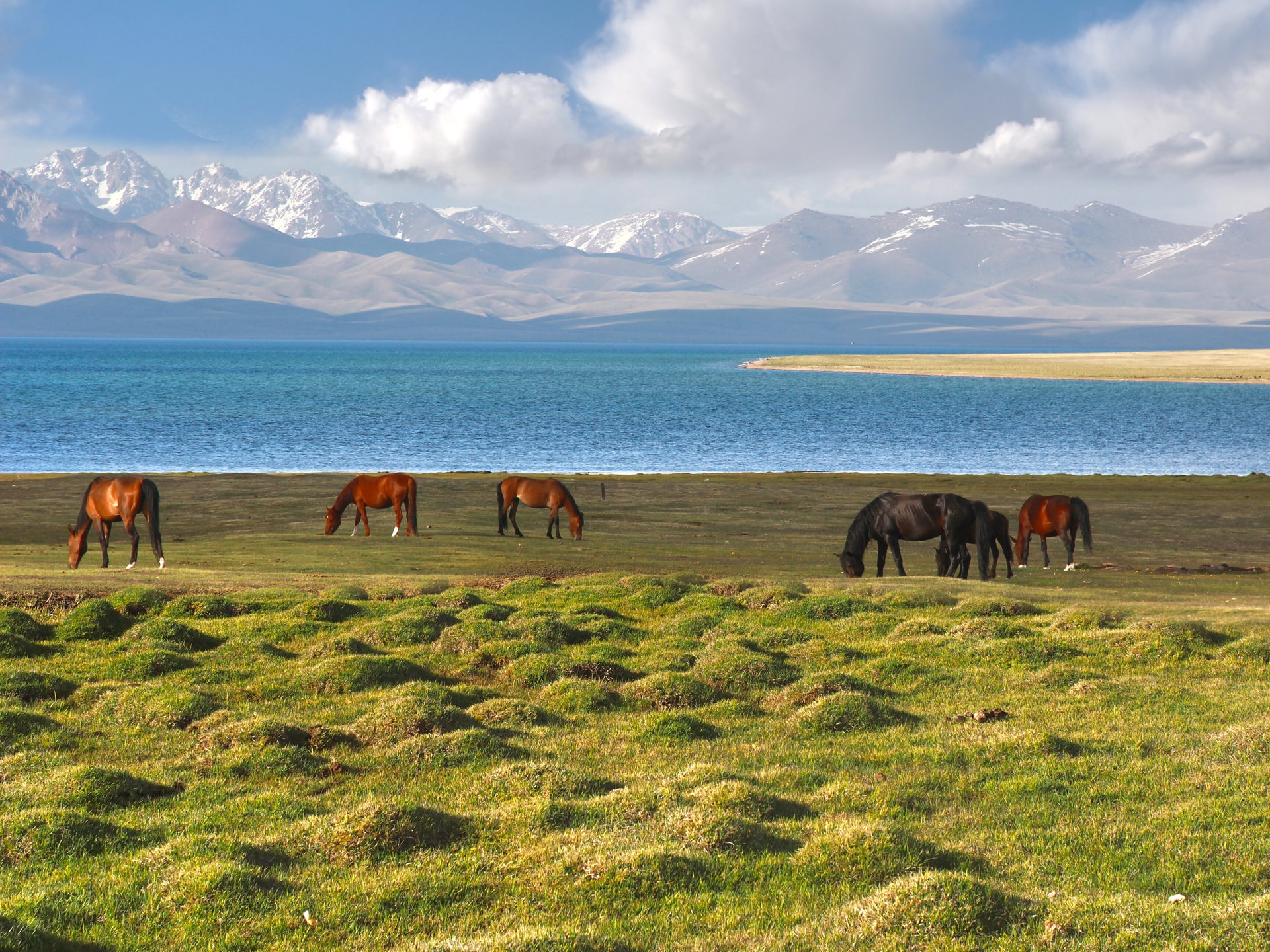 Tο αλπικό τοπίο της λίμνης Σονγκ Κουλ (σε υψόμετρο 3016 μ.), όπου θα περάσουμε τη νύχτα μας σε παραδοσιακή γιούρτα. Στη γιούρτα, όπου θα διαμείνουμε, θα χαλαρώσουμε δίπλα από τη σόμπα ακούγοντας ιστορίες για το παρελθόν.