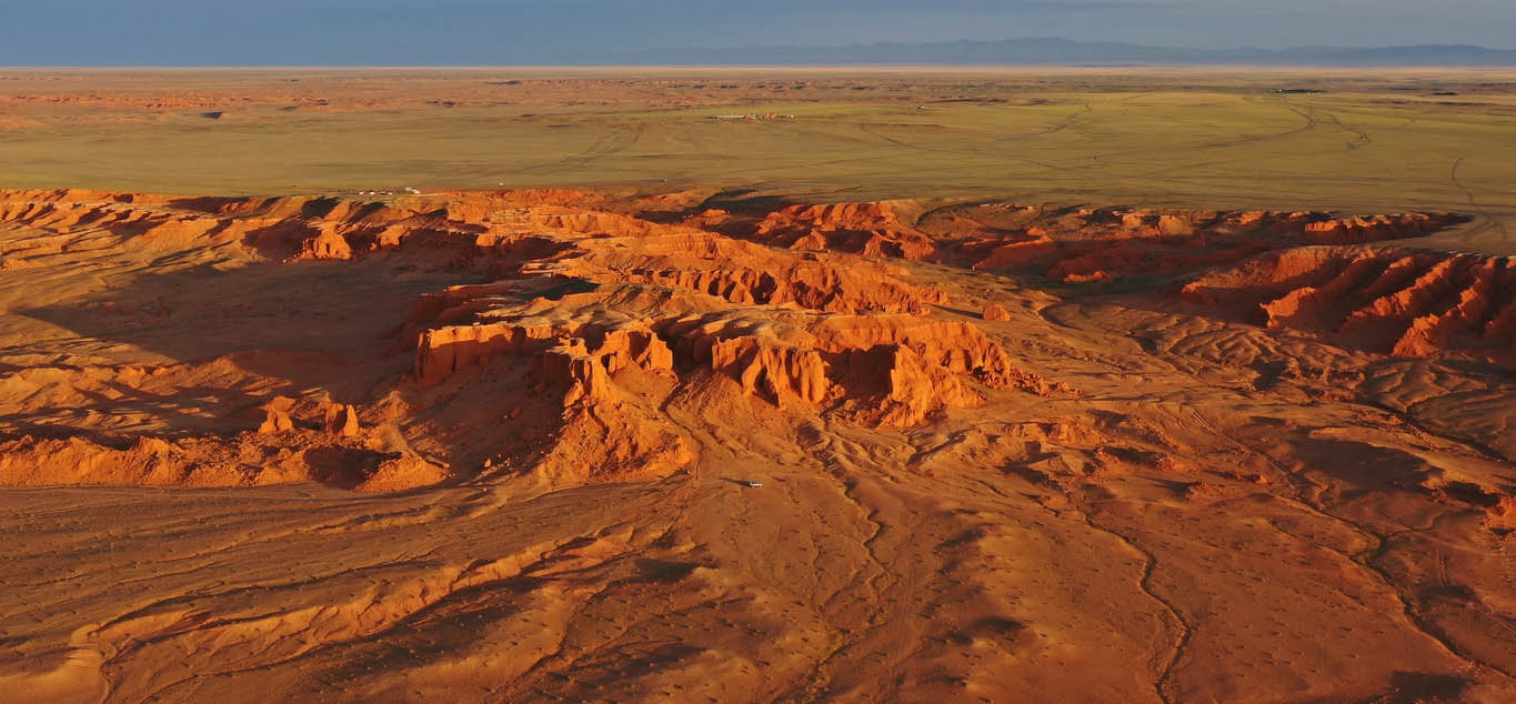 Πρόκειται για ένα αληθινό θαύμα της φύσης, που δημιουργήθηκε από τη διάβρωση της άμμου και των βράχων σε διάστημα χιλιάδων χρόνων. Εκεί βρέθηκαν οι πρώτοι σκελετοί δεινοσαύρων, δίπλα σε αρχαιολογικά σημάδια της παλαιολιθικής, της νεολιθικής και της εποχής του χαλκού. Στην περιοχή αυτή ο Αμερικανός παλαιοντολόγος Ρόι Τσάπμαν Άντριους ανακάλυψε πρώτος αβγά δεινοσαύρων και αποκάλεσε το μέρος αυτό «το τέλος του κόσμου». Οι επιστήμονες πιστεύουν ότι σε αυτό ακριβώς το μέρος, πριν από 200 εκατομμύρια χρόνια, υπήρξε ο βυθός μια τεράστιας θάλασσας. Θα περπατήσουμε σε έναν από τους πιο διάσημους παλαιοντολογικούς χώρους της Γης όπου το τοπίο είναι μαγικό και το πορφυρό των βράχων αποτελεί ιδανικό σκηνικό για τις ωραιότερες φωτογραφίες του ταξιδιού μας.