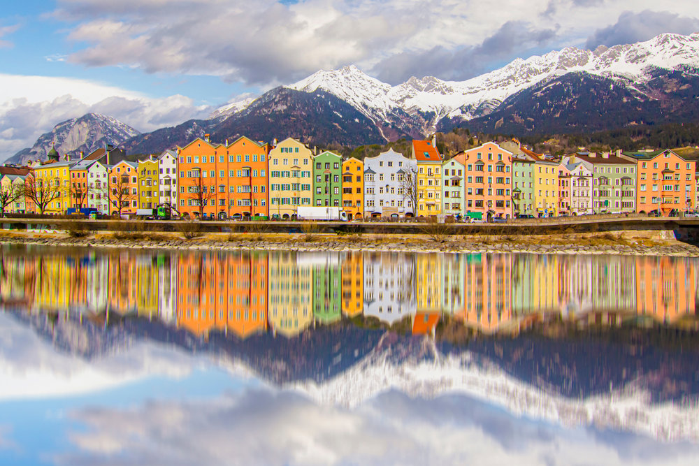 Η φημισμένη πόλη περιβάλλεται από τις αλπικές βουνοκορφές της Αυστρίας και έχει φιλοξενήσει 2 Χειμερινές Ολυμπιάδες. Εκεί μεταξύ άλλων θα θαυμάσουμε την μπαρόκ αρχιτεκτονική της Μαρίας Θηρεσίας, αλλά και τη Χρυσή Στέγη: Πρόκειται για ένα έρκερ -κάτι σαν προεξέχον μπαλκόνι 2 ορόφων- που πρόσθεσε το 1500 ο αυτοκράτορας Mαξιμιλιανός στην κατοικία του προκατόχου του, αυτοκράτορα Φρειδερίκου Γ'. Είναι καλυμμένη με 2.657 επίχρυσα χάλκινα πλακίδια, εξ ου και η ονομασία της.