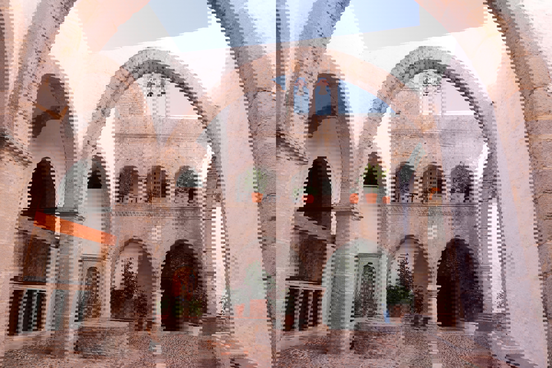 Μόλις περάσουμε την πύλη του κάστρου της επιβλητικής Μονής, η ατμόσφαιρα αποκτά άλλη βαρύτητα, κάνοντας αισθητή τη μεταφυσική διάσταση του χώρου.