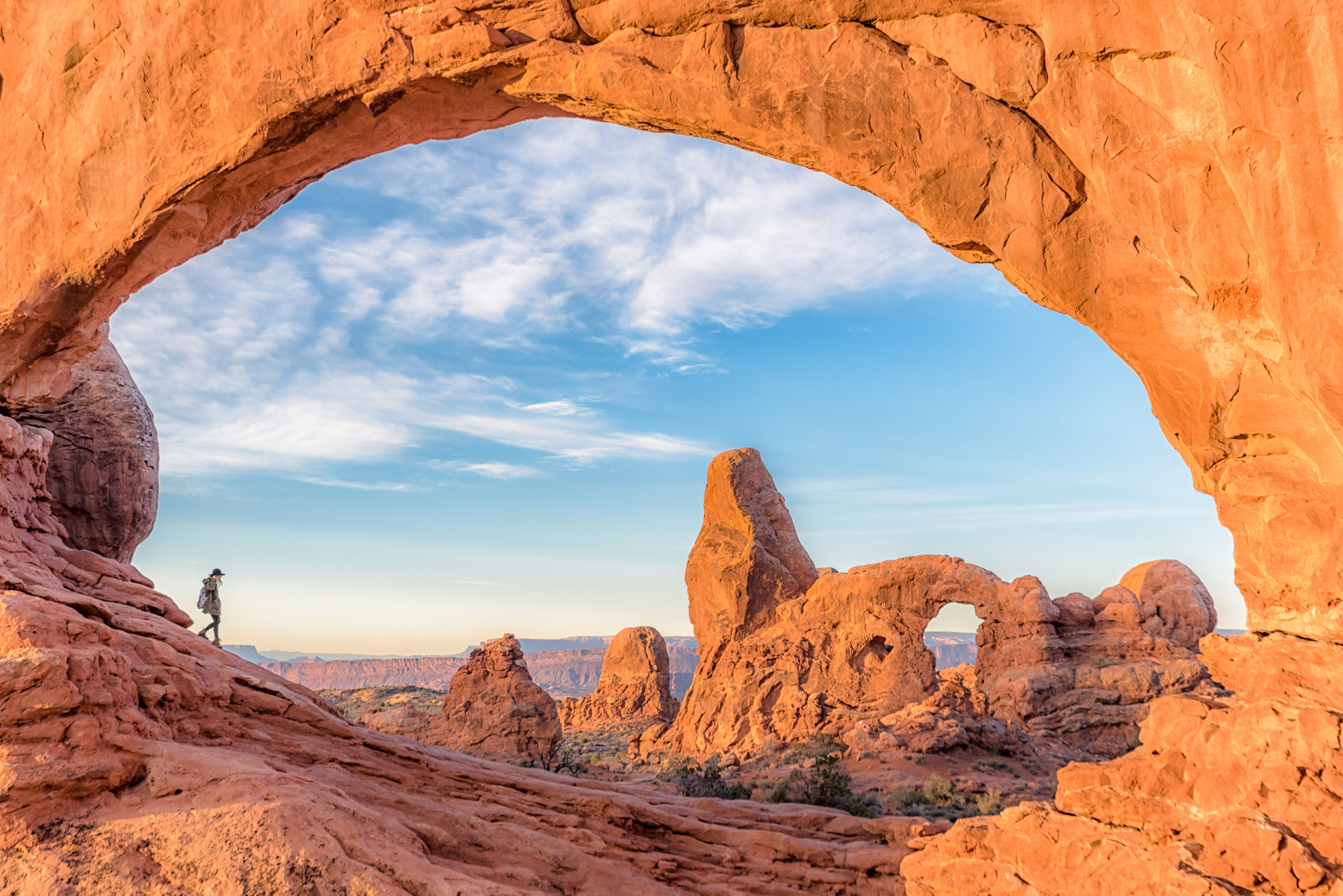 Δεκάδες γιγάντιες πέτρινες αψίδες διαμορφώνουν ένα σκηνικό εξωπραγματικό, σε μια τεράστια έκταση 310 τετρ. χλμ. Θα φωτογραφηθούμε μαζί τους και θα περπατήσουμε μέχρι τον εξώστη για να θαυμάσουμε την πλέον φημισμένη από όλες, την περίφημη Delicate Arch.