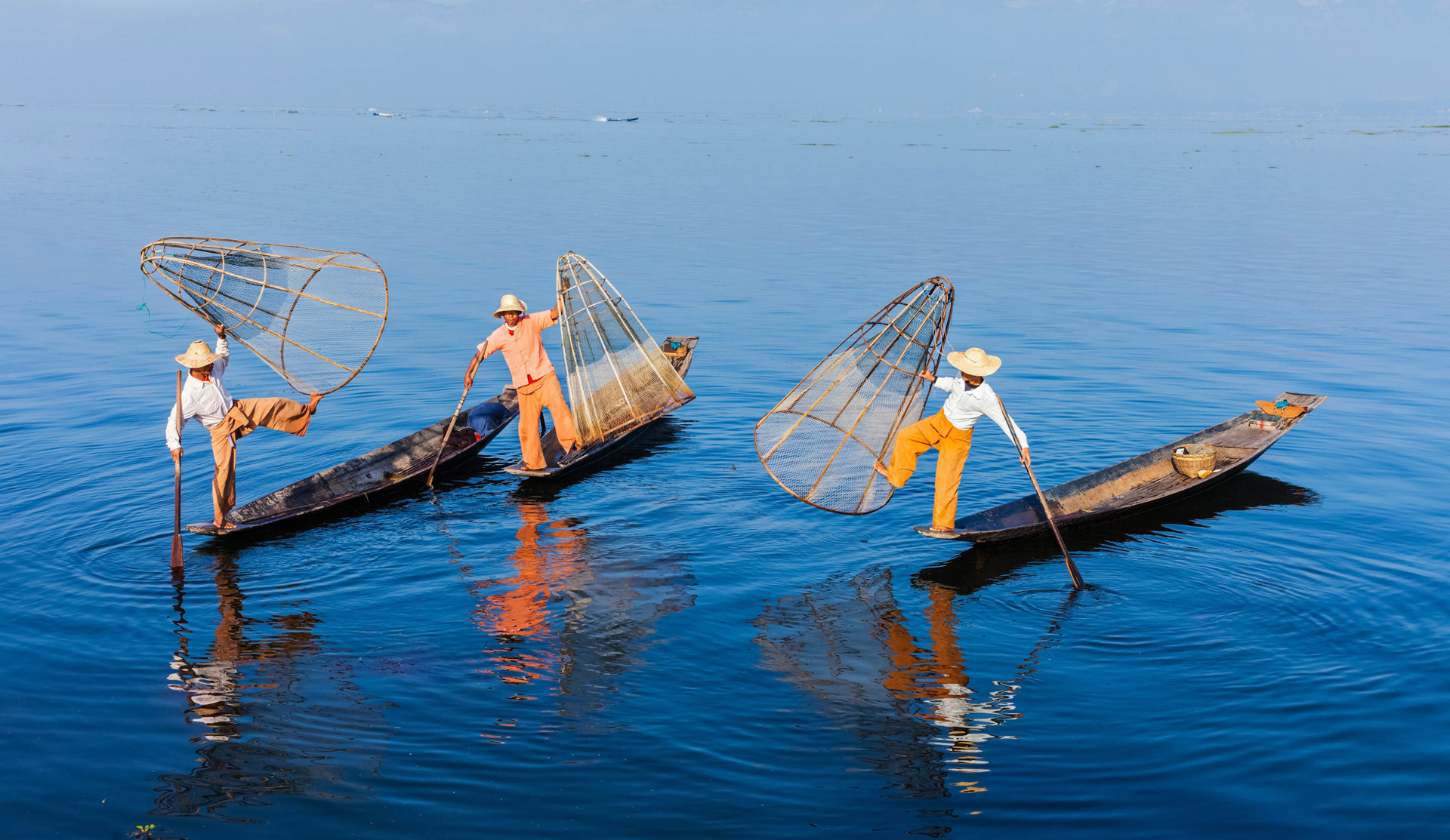 Περιηγηθείτε με βάρκες στον μυστηριακό υδάτινο κόσμο της λίμνης Ίνλε, όπου όλα μοιάζουν να επιπλέουν και να κινούνται: Τα σπίτια πάνω στους πασσάλους, οι πλωτοί κήποι που κατασκεύασαν οι ντόπιοι μιμούμενοι τη φύση, οι υάκινθοι, οι βάρκες. Θαυμάστε τους «κωπηλάτες του ποδιού» που αλιεύουν αναρίθμητα είδη ψαριών του ποταμού με τον δικό τους μοναδικό τρόπο.