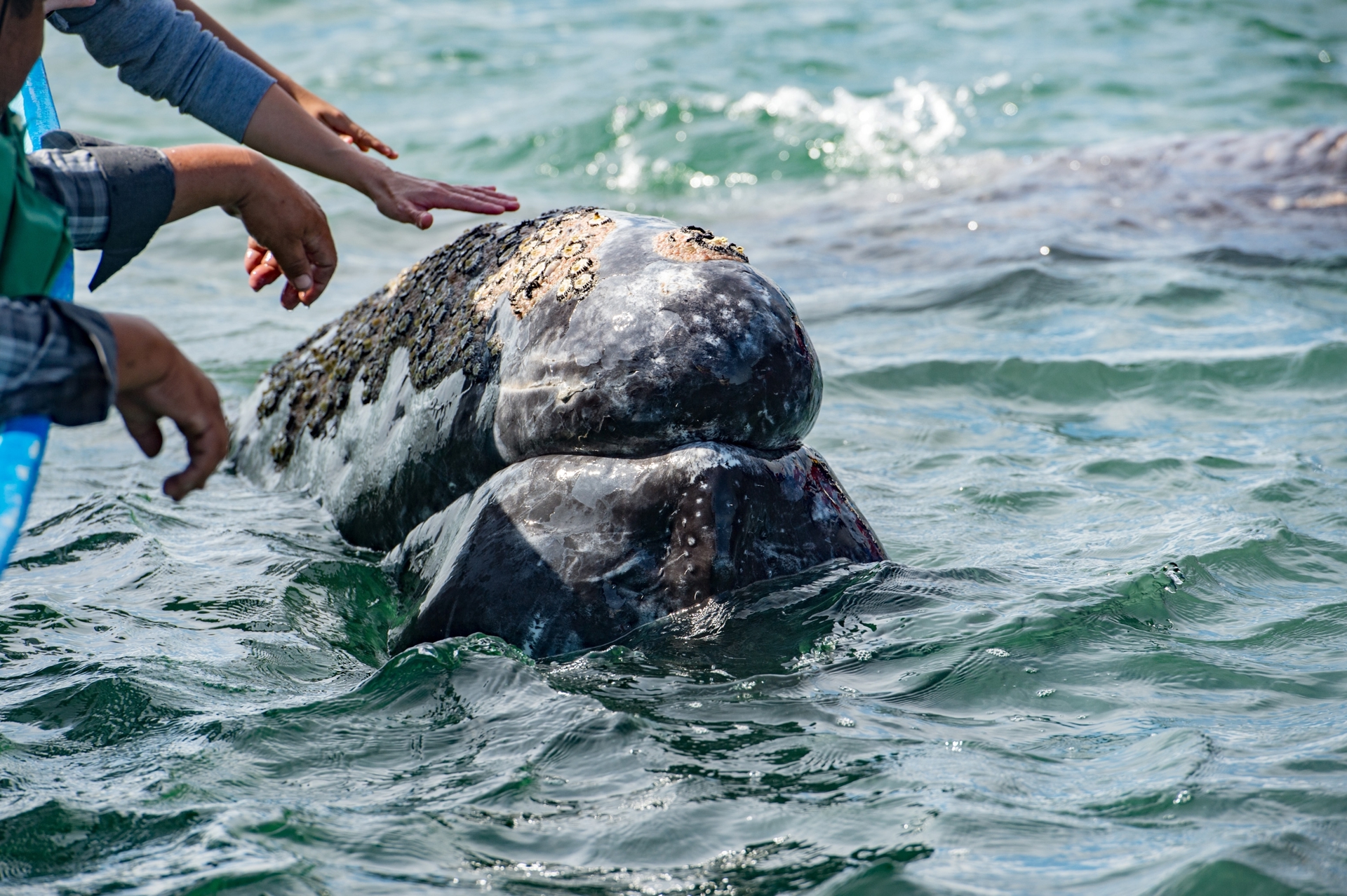 Παρακολούθηση φαλαινών στο φυσικό τους περιβάλλον στα ανοιχτά της Μπάχα με μικρές βάρκες.