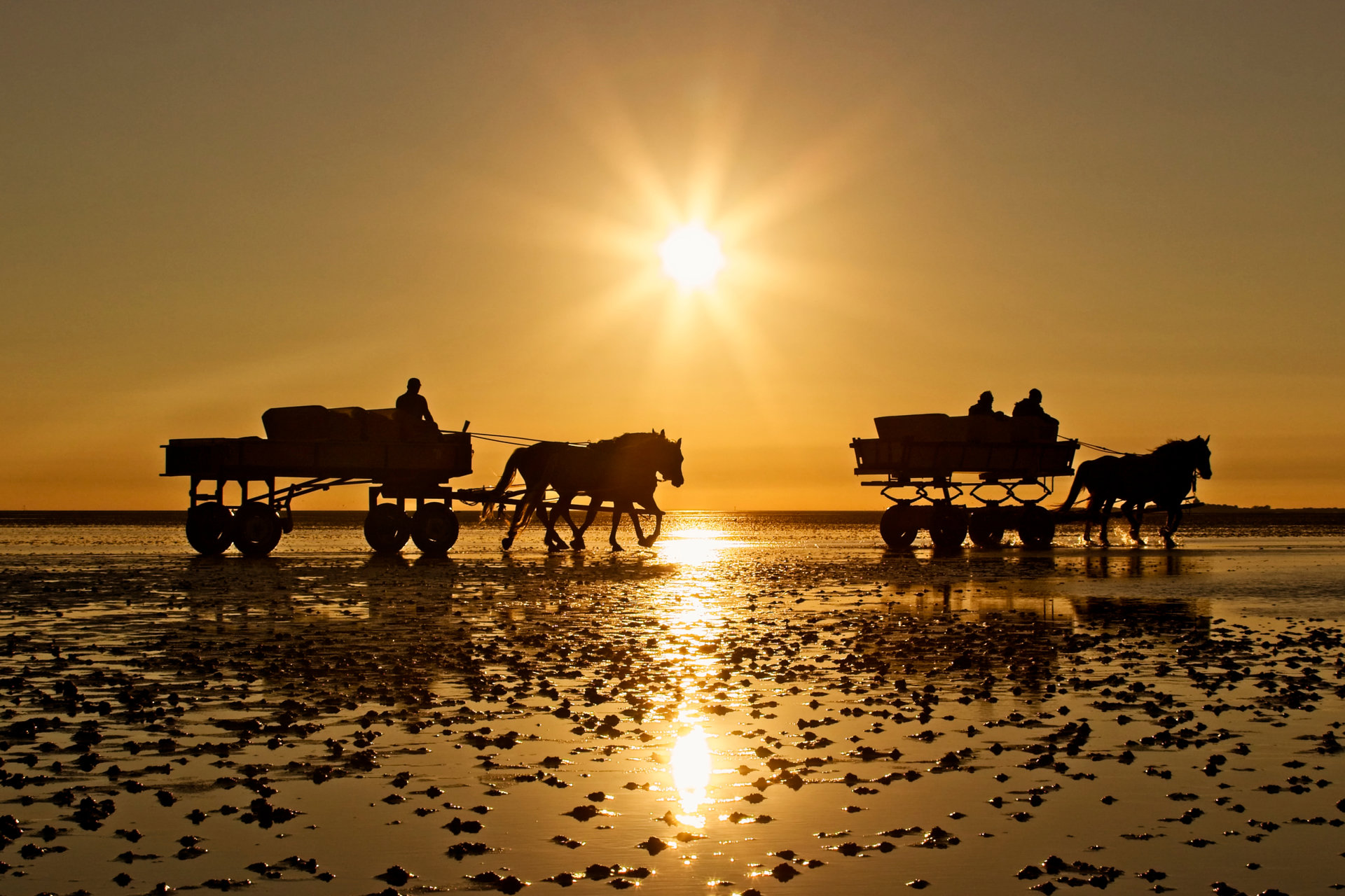 Καιρού επιτρέποντος και με ωράριο ανάλογο της παλίρροιας, θα διασχίσουμε τον βυθό της θάλασσας με ειδικές άμαξες την ώρα της άμπωτης, αφού θα έχουν αποτραβηχτεί τα ύδατα. Μας περιμένει ένα ιδιαίτερο περιβάλλον και ένας παράξενος βιότοπος. Οι άμαξες θα μας φέρουν μέχρι το νησάκι Νόιβερκ, από το οποία θα επιστρέψουμε πάλι με άμαξες ή αν δεν το επιτρέπει η πλημμυρίδα εν πλω...