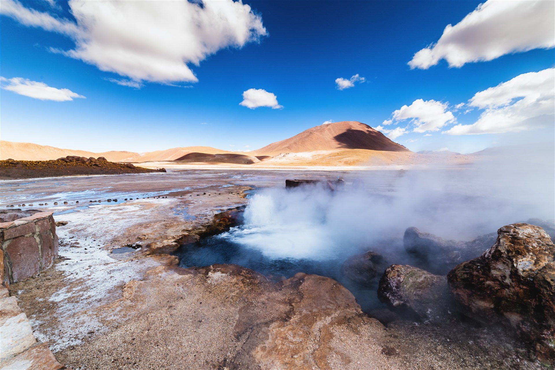 Θα επισκεφθούμε το περίφημο οροπέδιο θερμοπιδάκων Ελ Τάτιο, μια γυμνή κοιλάδα με αναρίθμητα γκέιζερ κοντά στα σύνορα με τη Βολιβία. Πρόκειται για μια από τις περιοχές με θερμοπίδακες στο υψηλότερο σημείο του κόσμου, με υψόμετρο 4320μ.